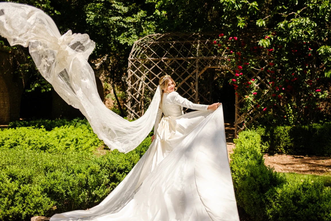 Realizamos fotografías creativas a contraluz, con el vestido y la espectacular cola del mismo, y también estuvimos realizando fotos mas tradicionales con sus padres.