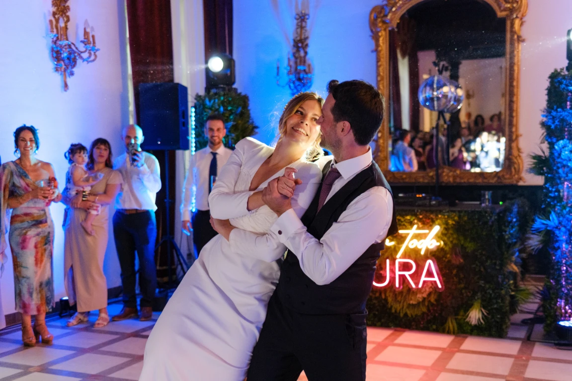 Después, rodeados por los invitados, Patricia y Alejandro comenzaron el baile nupcial con un vals que después cambió a bachata.